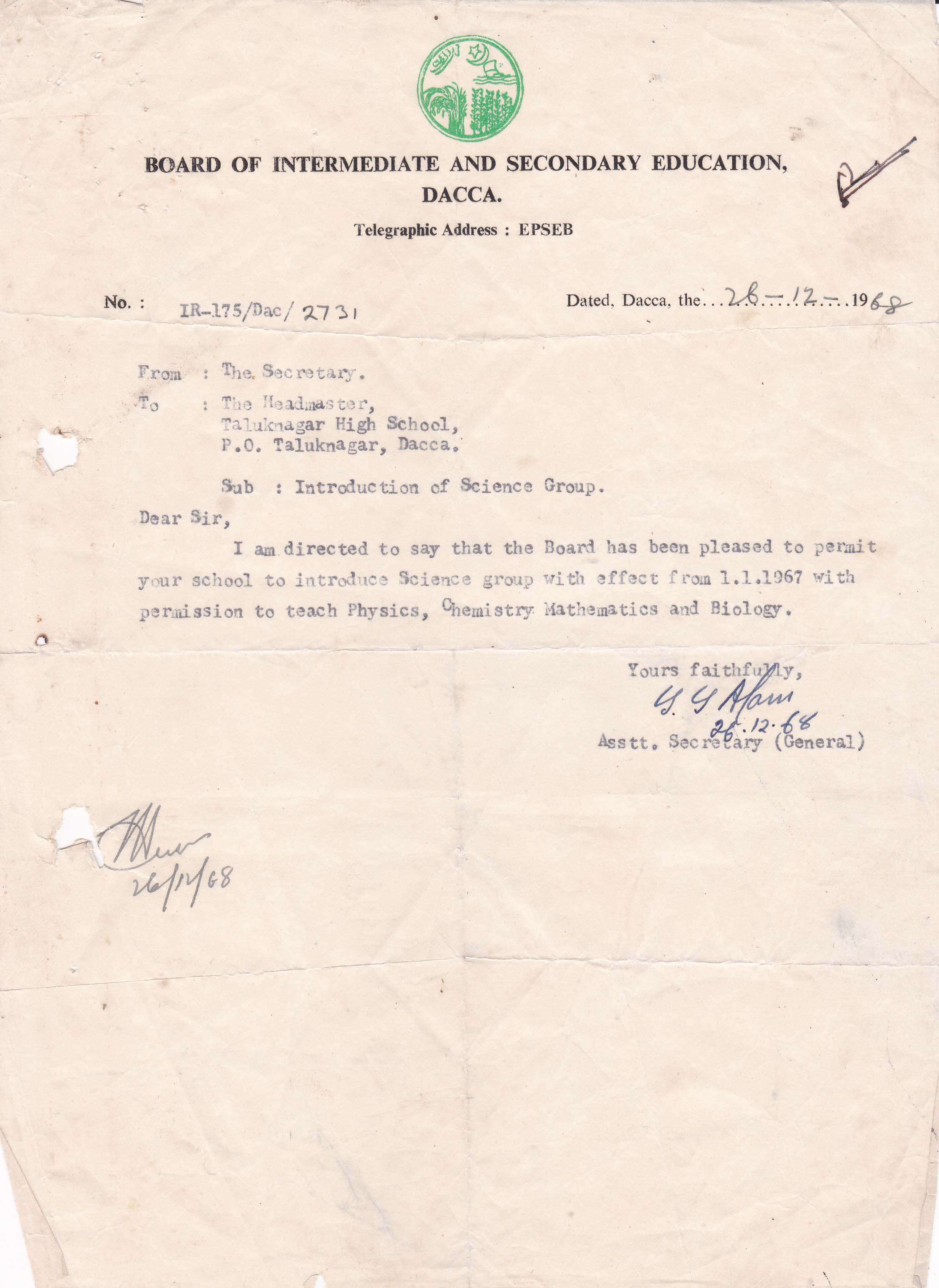 শাখা খোলার অনুমতিপত্র : বিজ্ঞান শাখা খোলার অনুমতিপত্র।